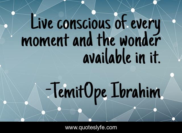 "TemitOpe Ibrahim Quotes." Quoteslyfe.com, 2025. Sat. 06 Dec. 2025. <https://www.quoteslyfe.com/quote/Live-conscious-of-every-moment-and-the-192260>.