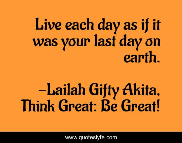 "Lailah Gifty Akita, Think Great: Be Great! Quotes." Quoteslyfe.com, 2025. Fri. 05 Dec. 2025. <https://www.quoteslyfe.com/quote/Live-each-day-as-if-it-was-97244>.