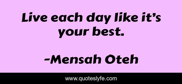 "Mensah Oteh Quotes." Quoteslyfe.com, 2025. Fri. 05 Dec. 2025. <https://www.quoteslyfe.com/quote/Live-each-day-like-it-s-your-49148>.