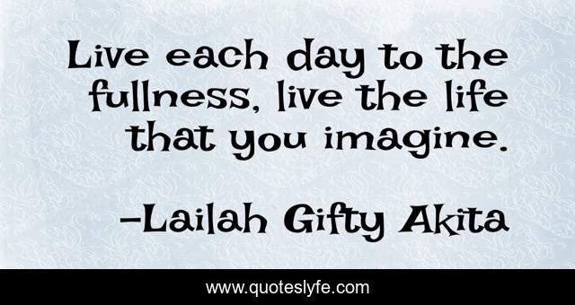 This page presents the quote "Live each day to the fullness, live the life that you imagine.". Author of this quote is Lailah Gifty Akita. This quote is about imaginative, life, live-and-die, live-life, imagination, live-and-living, live-life-so-well, live-and-learn, imaginations,.