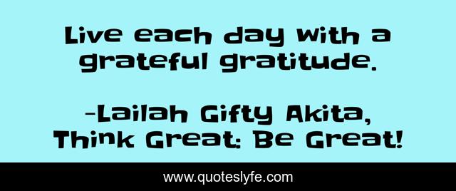 "Lailah Gifty Akita, Think Great: Be Great! Quotes." Quoteslyfe.com, 2025. Fri. 05 Dec. 2025. <https://www.quoteslyfe.com/quote/Live-each-day-with-a-grateful-gratitude-180307>.