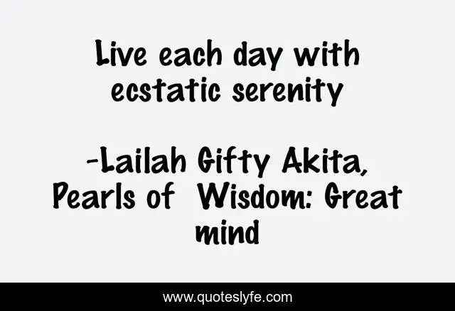 "Lailah Gifty Akita, Pearls of Wisdom: Great mind Quotes." Quoteslyfe.com, 2025. Sat. 06 Dec. 2025. <https://www.quoteslyfe.com/quote/Live-each-day-with-ecstatic-serenity-85307>.