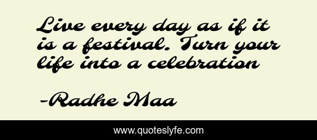 This page presents the quote "Live every day as if it is a festival. Turn your life into a celebration". Author of this quote is Radhe Maa. This quote is about spiritual, radhe-guru-maa, spiritual-leader, radhe-maa, spiritual-sayings, wisdom, quotes-and-saying, inner-peace, spiritual-insights,.