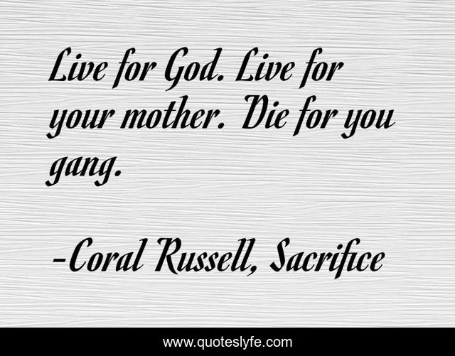 This page presents the quote "Live for God. Live for your mother. Die for you gang.". Author of this quote is Coral Russell, Sacrifice. .