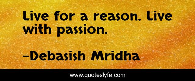 This page presents the quote "Live for a reason. Live with passion.". Author of this quote is Debasish Mridha. This quote is about life, love, knowledge, inspirational, intelligence, philosophy, wisdom, quotes, affection,.