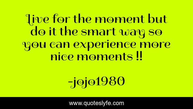 This page presents the quote "Live for the moment but do it the smart way so you can experience more nice moments !!". Author of this quote is jojo1980. This quote is about life-philosophy, advice, life-and-living, life, truth,.