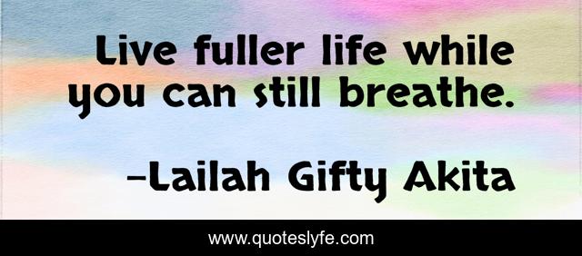 This page presents the quote "Live fuller life while you can still breathe.". Author of this quote is Lailah Gifty Akita. This quote is about living, life, philosophy, positive, motivational, confidence, wisdom-of-lailah-gifty-akita, optimistic,.