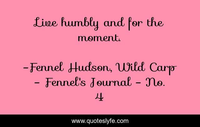 "Fennel Hudson, Wild Carp - Fennel's Journal - No. 4 Quotes." Quoteslyfe.com, 2025. Tue. 09 Dec. 2025. <https://www.quoteslyfe.com/quote/Live-humbly-and-for-the-moment-179409>.