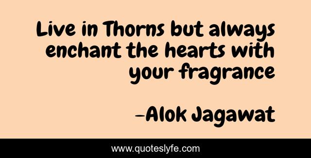 This page presents the quote "Live in Thorns but always enchant the hearts with your fragrance". Author of this quote is Alok Jagawat. This quote is about thorns, heart, fragrance, roses,.