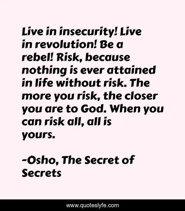 "Osho, The Secret of Secrets Quotes." Quoteslyfe.com, 2025. Sun. 07 Dec. 2025. <https://www.quoteslyfe.com/quote/Live-in-insecurity-Live-in-revolution-Be-240267>.