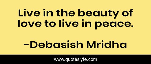 This page presents the quote "Live in the beauty of love to live in peace.". Author of this quote is Debasish Mridha. This quote is about inspirational, beauty, philosophy, debasish-mridha, quotes, live-in-peace, live-in-beauty, enthusiasm, debasish-mridha-m-d,.