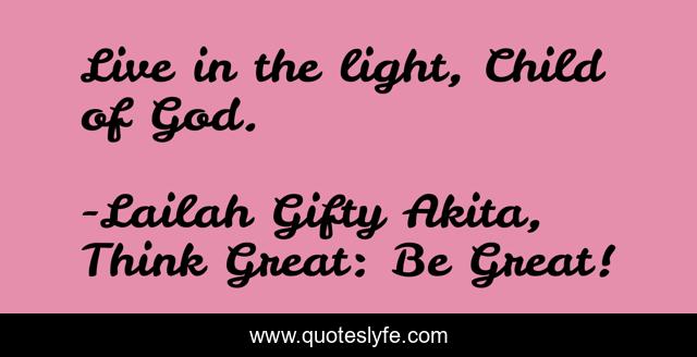 "Lailah Gifty Akita, Think Great: Be Great! Quotes." Quoteslyfe.com, 2025. Mon. 08 Dec. 2025. <https://www.quoteslyfe.com/quote/Live-in-the-light-Child-of-God-118776>.