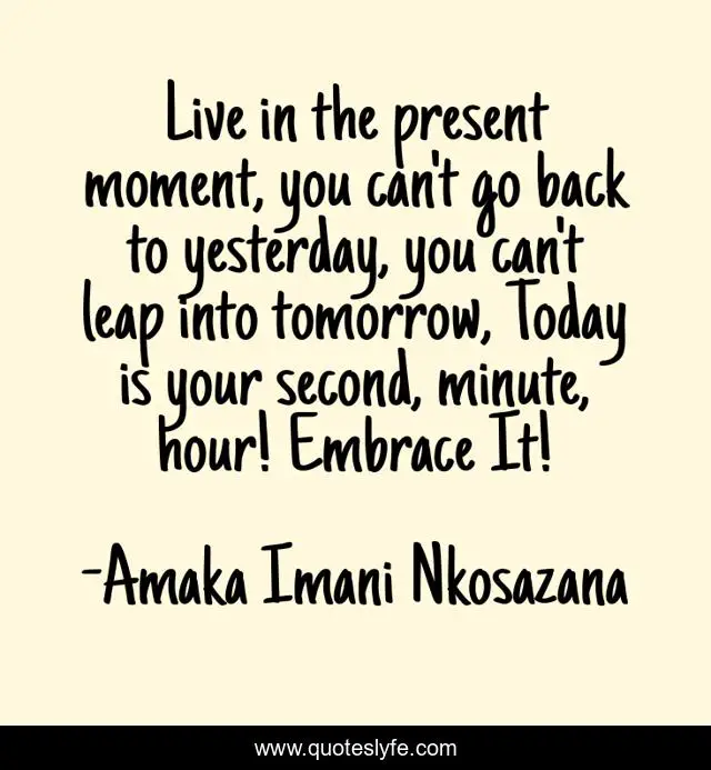 "Amaka Imani Nkosazana Quotes." Quoteslyfe.com, 2025. Fri. 05 Dec. 2025. <https://www.quoteslyfe.com/quote/Live-in-the-present-moment-you-can-93267>.