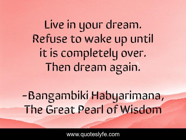 "Bangambiki Habyarimana, The Great Pearl of Wisdom Quotes." Quoteslyfe.com, 2025. Sun. 07 Dec. 2025. <https://www.quoteslyfe.com/quote/Live-in-your-dream-Refuse-to-wake-131115>.