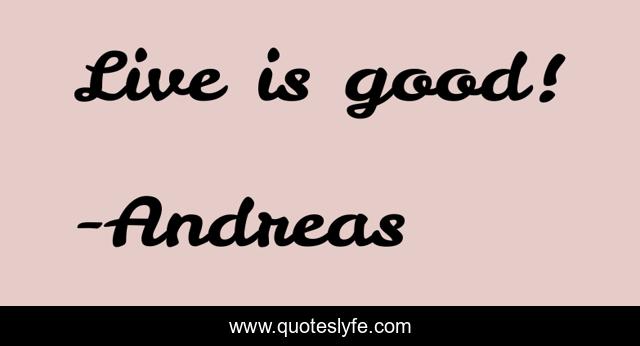"Andreas Quotes." Quoteslyfe.com, 2025. Sat. 06 Dec. 2025. <https://www.quoteslyfe.com/quote/Live-is-good-192379>.
