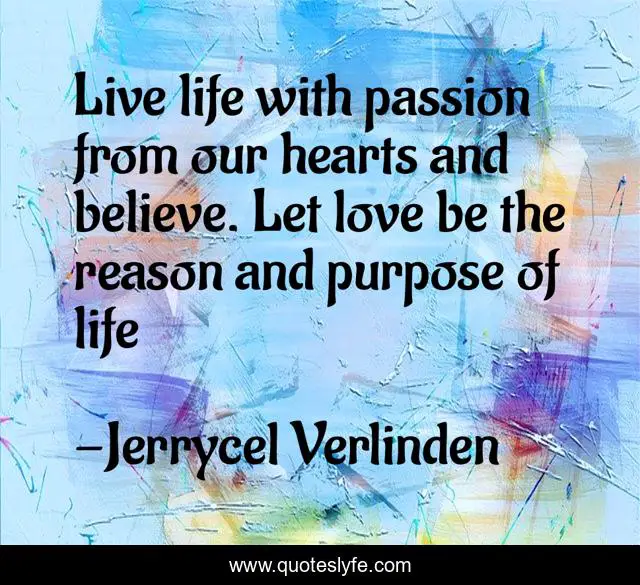 "Jerrycel Verlinden Quotes." Quoteslyfe.com, 2025. Sat. 06 Dec. 2025. <https://www.quoteslyfe.com/quote/Live-life-with-passion-from-our-hearts-125707>.