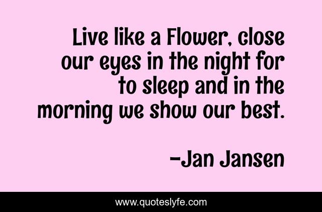 This page presents the quote "Live like a Flower, close our eyes in the night for to sleep and in the morning we show our best.". Author of this quote is Jan Jansen. .
