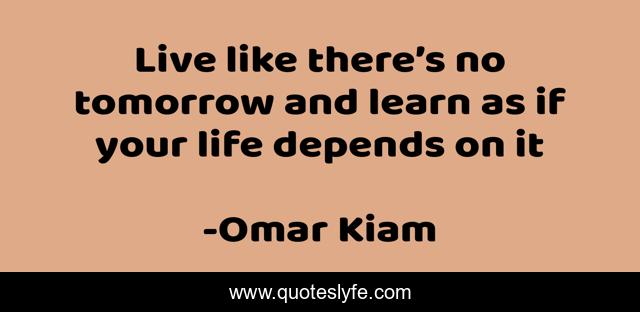 "Omar Kiam Quotes." Quoteslyfe.com, 2026. Wed. 14 Jan. 2026. <https://www.quoteslyfe.com/quote/Live-like-there-s-no-tomorrow-and-28631>.