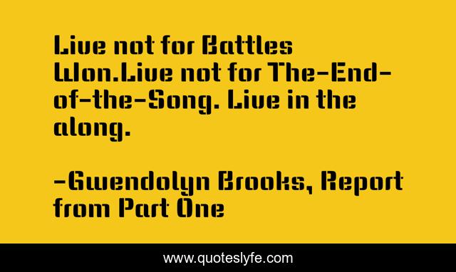 "Gwendolyn Brooks, Report from Part One Quotes." Quoteslyfe.com, 2025. Fri. 05 Dec. 2025. <https://www.quoteslyfe.com/quote/Live-not-for-Battles-Won-Live-not-24274>.