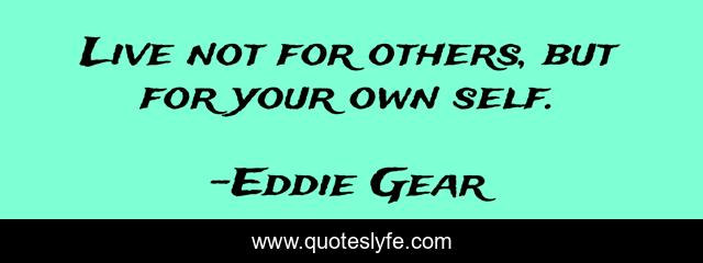 This page presents the quote "Live not for others, but for your own self.". Author of this quote is Eddie Gear. This quote is about life, live,.