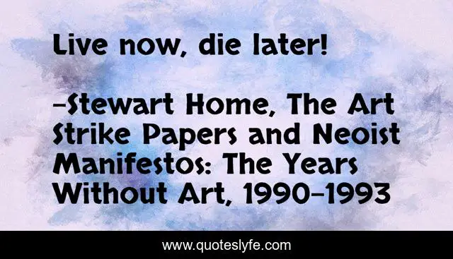"Stewart Home, The Art Strike Papers and Neoist Manifestos: The Years Without Art, 1990-1993 Quotes." Quoteslyfe.com, 2025. Sun. 07 Dec. 2025. <https://www.quoteslyfe.com/quote/Live-now-die-later-21821>.