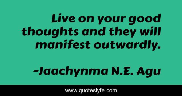 "Jaachynma N.E. Agu Quotes." Quoteslyfe.com, 2025. Mon. 08 Dec. 2025. <https://www.quoteslyfe.com/quote/Live-on-your-good-thoughts-and-they-88895>.