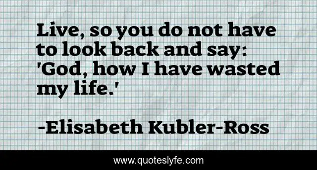 This page presents the quote "Live, so you do not have to look back and say: 'God, how I have wasted my life.'". Author of this quote is Elisabeth Kubler-Ross. This quote is about life, my life, live,.