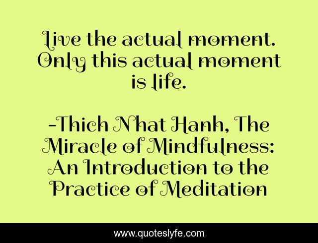 "Thich Nhat Hanh, The Miracle of Mindfulness: An Introduction to the Practice of Meditation Quotes." Quoteslyfe.com, 2025. Mon. 08 Dec. 2025. <https://www.quoteslyfe.com/quote/Live-the-actual-moment-Only-this-actual-185842>.