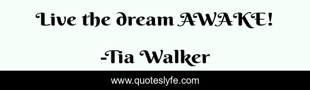 "Tia Walker Quotes." Quoteslyfe.com, 2025. Sat. 06 Dec. 2025. <https://www.quoteslyfe.com/quote/Live-the-dream-AWAKE-130162>.