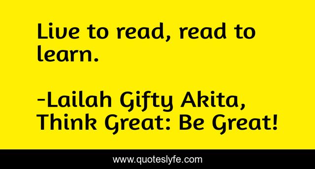 "Lailah Gifty Akita, Think Great: Be Great! Quotes." Quoteslyfe.com, 2025. Sat. 06 Dec. 2025. <https://www.quoteslyfe.com/quote/Live-to-read-read-to-learn-117195>.