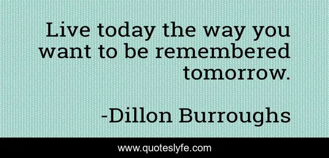 This page presents the quote "Live today the way you want to be remembered tomorrow.". Author of this quote is Dillon Burroughs. This quote is about legacy, make-a-difference,.