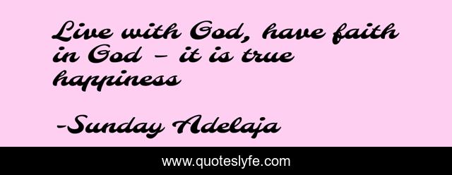 This page presents the quote "Live with God, have faith in God – it is true happiness". Author of this quote is Sunday Adelaja. This quote is about dedication, faith, god, happiness, living,.