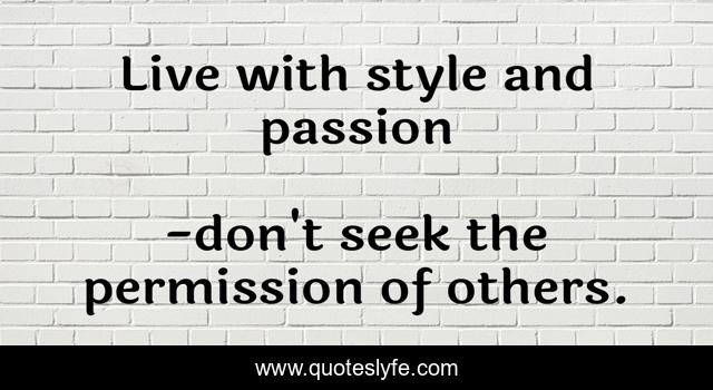 "don't seek the permission of others. Quotes." Quoteslyfe.com, 2025. Sat. 06 Dec. 2025. <https://www.quoteslyfe.com/quote/Live-with-style-and-passion-92911>.