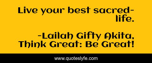 "Lailah Gifty Akita, Think Great: Be Great! Quotes." Quoteslyfe.com, 2025. Sun. 07 Dec. 2025. <https://www.quoteslyfe.com/quote/Live-your-best-sacred-life-78291>.