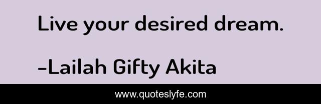 This page presents the quote "Live your desired dream.". Author of this quote is Lailah Gifty Akita. This quote is about confidence, move-on, desires, positive, motivational, wishes, optimistic, self-help, wait,.