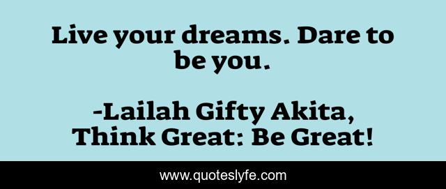 "Lailah Gifty Akita, Think Great: Be Great! Quotes." Quoteslyfe.com, 2025. Mon. 08 Dec. 2025. <https://www.quoteslyfe.com/quote/Live-your-dreams-Dare-to-be-you-124052>.
