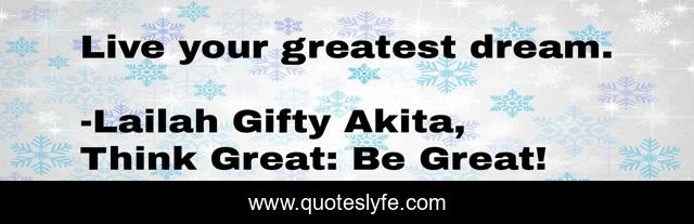 "Lailah Gifty Akita, Think Great: Be Great! Quotes." Quoteslyfe.com, 2025. Sun. 07 Dec. 2025. <https://www.quoteslyfe.com/quote/Live-your-greatest-dream-107151>.