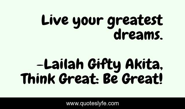 "Lailah Gifty Akita, Think Great: Be Great! Quotes." Quoteslyfe.com, 2025. Sat. 06 Dec. 2025. <https://www.quoteslyfe.com/quote/Live-your-greatest-dreams-92693>.