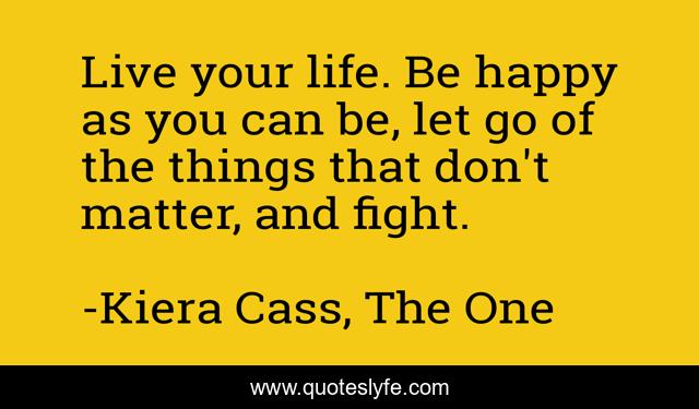 This page presents the quote "Live your life. Be happy as you can be, let go of the things that don't matter, and fight.". Author of this quote is Kiera Cass, The One. This quote is about dad, life, parent, the-one, fight, the-selection, letter, kiera-cass, happiness,.