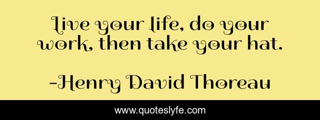 This page presents the quote "Live your life, do your work, then take your hat.". Author of this quote is Henry David Thoreau. This quote is about life, hat, live,.