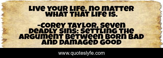 "Corey Taylor, Seven Deadly Sins: Settling the Argument Between Born Bad and Damaged Good Quotes." Quoteslyfe.com, 2025. Tue. 09 Dec. 2025. <https://www.quoteslyfe.com/quote/Live-your-life-no-matter-what-that-5056>.