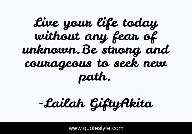 Live your life today without any fear of unknown.Be strong and courageous to seek new path.