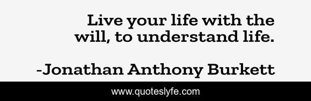 This page presents the quote "Live your life with the will, to understand life.". Author of this quote is Jonathan Anthony Burkett. This quote is about lessons, life, kids, love, donald-trump, work, growth, facebook, understand,.