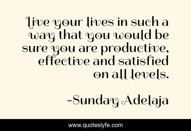 This page presents the quote "Live your lives in such a way that you would be sure you are productive, effective and satisfied on all levels.". Author of this quote is Sunday Adelaja. This quote is about live, productive, levels, satisfied, effective,.
