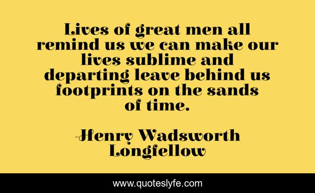 This page presents the quote "Lives of great men all remind us we can make our lives sublime and departing leave behind us footprints on the sands of time.". Author of this quote is Henry Wadsworth Longfellow. This quote is about models, role,.