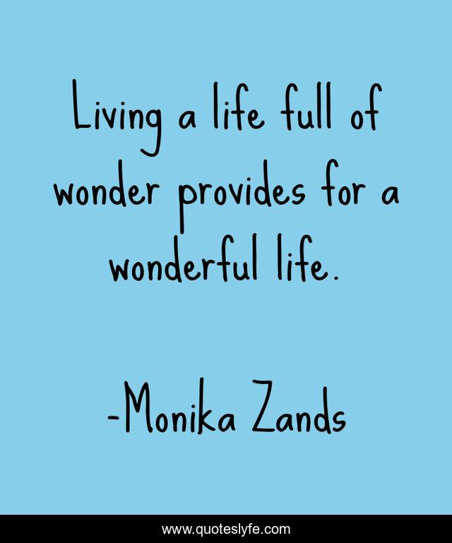 This page presents the quote "Living a life full of wonder provides for a wonderful life.". Author of this quote is Monika Zands. This quote is about love, creativity, inspirational, innovation, enthusiasm, affection,.