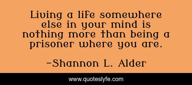 This page presents the quote "Living a life somewhere else in your mind is nothing more than being a prisoner where you are.". Author of this quote is Shannon L. Alder. This quote is about living, anxiety, love, plans, dying, longing, career, not-living, dreams,.