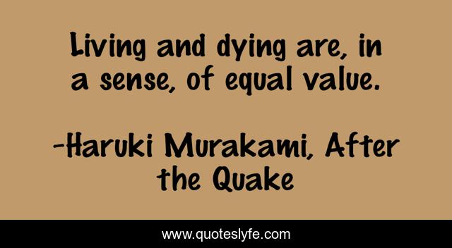 This page presents the quote "Living and dying are, in a sense, of equal value.". Author of this quote is Haruki Murakami, After the Quake. This quote is about living, life, death, dying,.