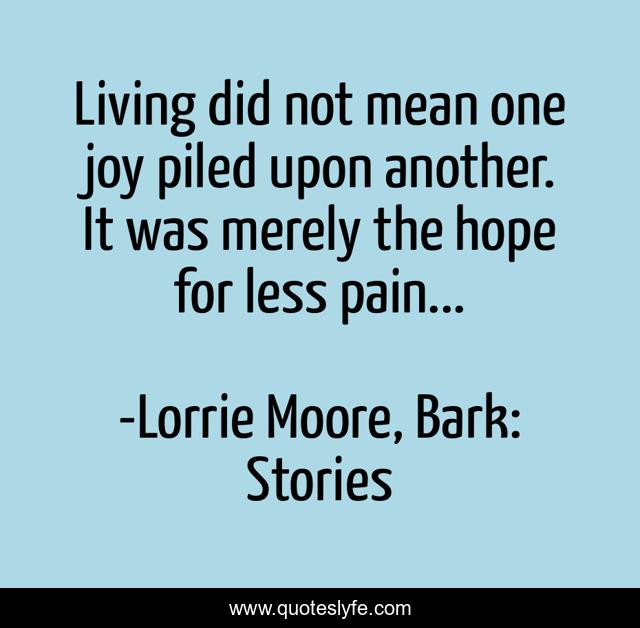 This page presents the quote "Living did not mean one joy piled upon another. It was merely the hope for less pain...". Author of this quote is Lorrie Moore, Bark: Stories. This quote is about grief, life,.
