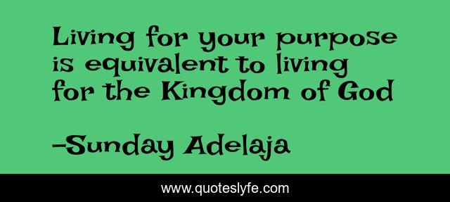 This page presents the quote "Living for your purpose is equivalent to living for the Kingdom of God". Author of this quote is Sunday Adelaja. This quote is about kingdom, life, love, jobless, service, people, money, god, work,.